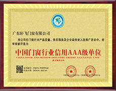 • 中國門窗行業信用AAA級單